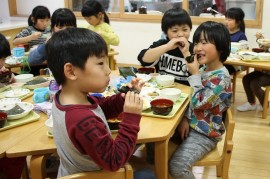 給食は手巻き寿司。南南東に向かって願い事をしながら食べました。