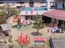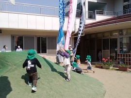 そよそよ泳ぐこいのぼりに見守られながら、園庭で過ごす子どもたちの様子は、こちらのULRから動画でご覧いただけます!