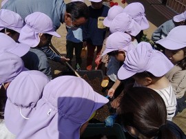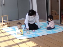 本日、一番に園庭にやってきたのは、ことり組の子どもたち。 |
