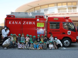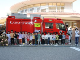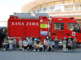 突然の「火災」のアナウンスと、消防車の到着にびっくりしたけど、みんな大変上手に避難することができました。