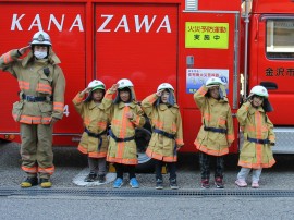 たいよう組は、‘防火服’も着せてもらいました。 |