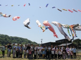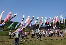 昨年に続き、地域の方が鯉のぼりをあげて出迎えてくださいました。 |