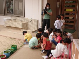 トマト組さんのお部屋にもカメラマンがやってきましたよ。 |