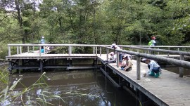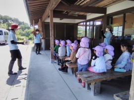 たいよう組の子どもたちがザリガニ釣りを体験しました。