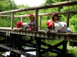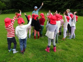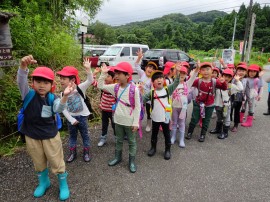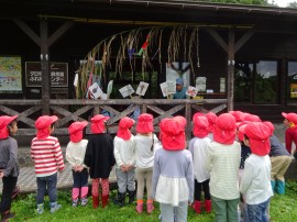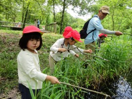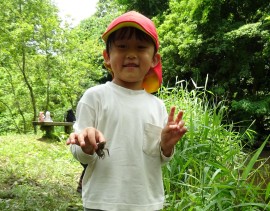 今年もまた、たいよう組が夕日寺健民自然園までザリガニ釣りに行ってきました。