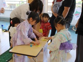 お店のお手伝いは、たいよう組(年長)さん。 |