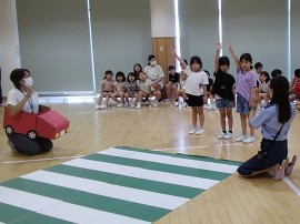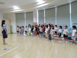 今年も、金沢市の交通安全教室指導員にお越しいただき、たいよう組(年長)と学童の子どもたちが 交通ルールを学びました。