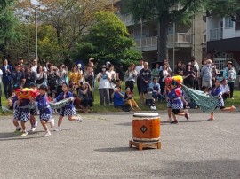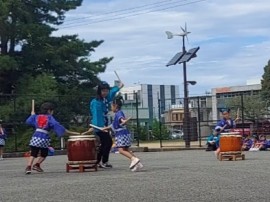 平和町公園では、子どもたちの演技を 地域の方々に披露します。 |