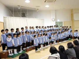 最後は、たいよう はな ことり組のみんなで、『カレンダーマーチ』と『へいわのうた』を合唱しました |