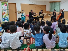 Happy!コンサートは、北國銀行さんが地域の子どもたちを対象に「プロが演奏する素晴らしい音楽を子どもたちに届けたい」という想いから、実施されている活動です。 |