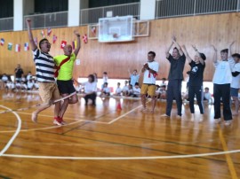 当日は、城南中学校の体育館をおかりして、運動会を開催しました。 |