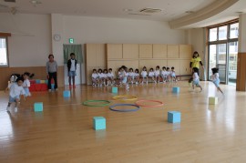 たいよう組さんも、進級し心機一転楽しそうに参加している姿が印象的でした。楽しく体を動かしながら、昨年度培った土台の上に、さらに成長を積み重ねていけるといいですね。