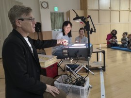 影絵師のジャック・リー・ランダルさん(ShadowWorks)と演奏者の上野さん(愛称:ノッチ)が、平和こども園に来園してくださいました!!