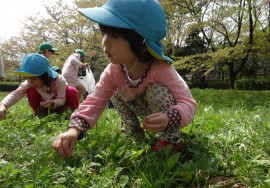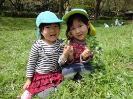 はな組さんとたいよう組さんで、犀川河川敷までよもぎ摘みに出かけました。