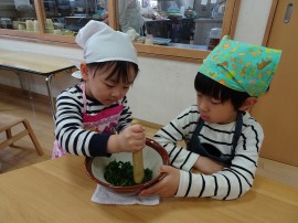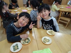 たいよう組さんが、よもぎ団子作りに挑戦♪