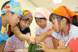 スイカの中身をくりぬくのっておもしろ~い!! |