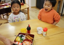 「今日の給食、おせち料理なんだって!」 |