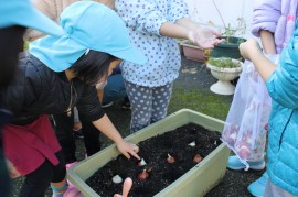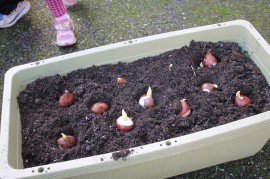 みんなで植えたたくさんの球根。 |