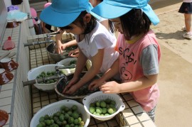 キレイに洗ったら‘ヘタ’をとるんだって。 |